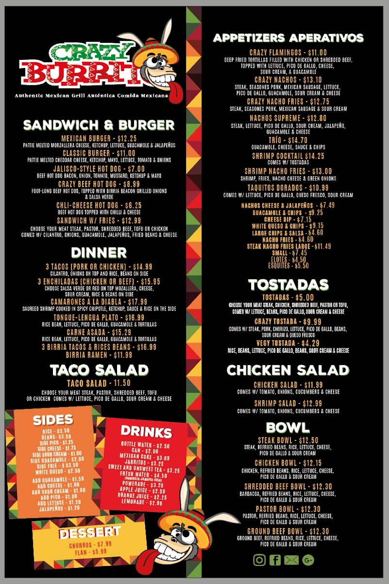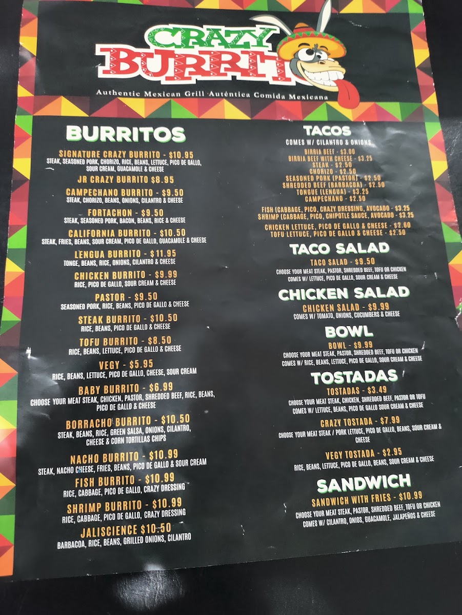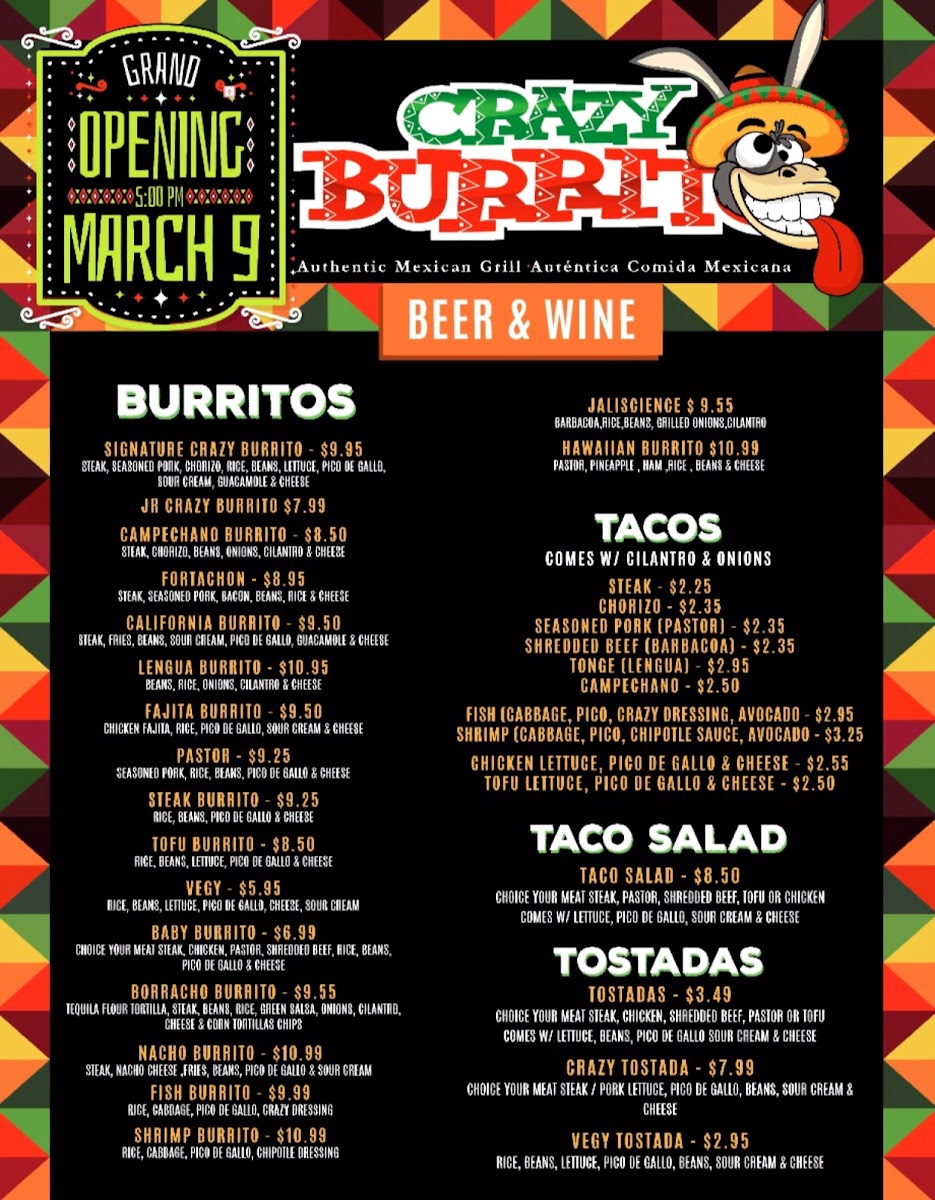 At Crazy Burrito Authentic Mexican Grill, you’ll find a menu full of vibrant flavors that transport you straight to the heart of Mexico. Located in the heart of Dunedin, FL, this spot is all about fresh, bold, and authentic Mexican dishes. From sizzling burritos to mouthwatering tacos, every item is crafted with high-quality ingredients, bringing the taste of real Mexican street food to your table. Whether you’re in the mood for a hearty burrito stuffed with all your favorite fillings or a zesty taco topped with tangy salsa, the options here are sure to satisfy your cravings. Every bite promises a perfect blend of savory, spicy, and refreshing flavors, giving you a true taste of Mexico in every meal. So, dive into the Crazy Burrito Authentic Mexican Grill Dunedin Menu and experience the deliciousness for yourself!